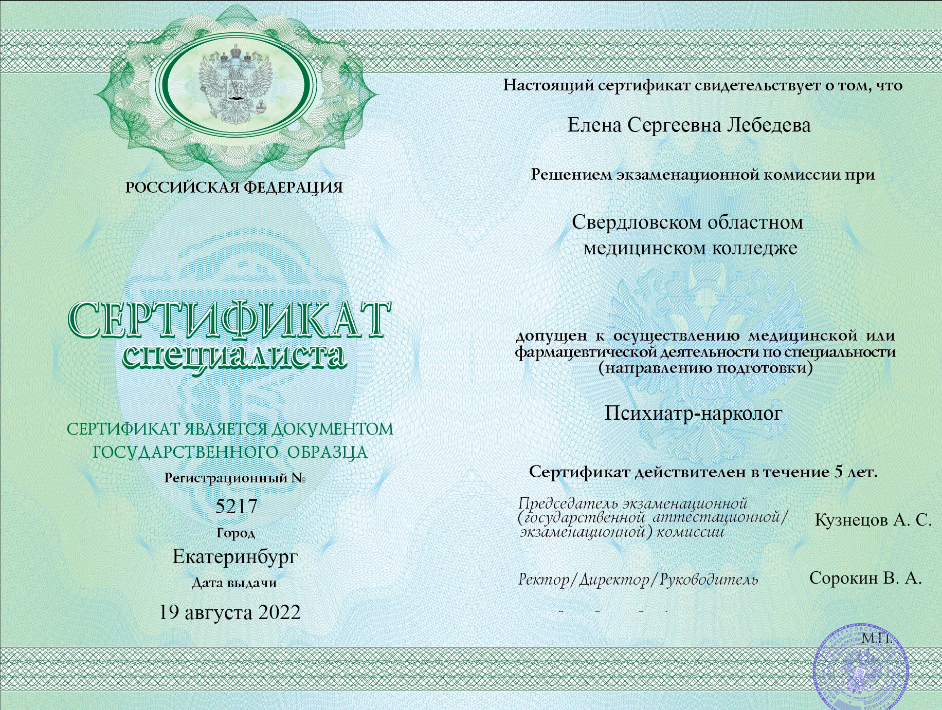 Елена Сергеевна Лебедева врач нарколог клиники доктора Стукаловой в Немане